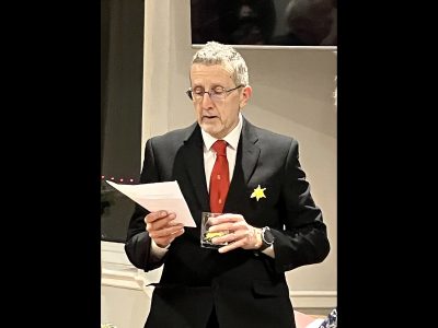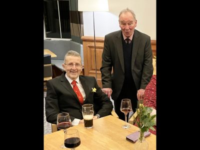 The group of members and friends that gathered at Mortonhall Golf Club for our 2026 St David’s Day dinner was smaller than usual, but the quality and variety of the food and conversation made up for the lack of numbers. Our President, David Hughes, had sent a “Kiaora” message from his travels, so it was our ever-energetic Secretary, Jennifer Welsher, who welcomed members before Margaret Brandie said Grace.